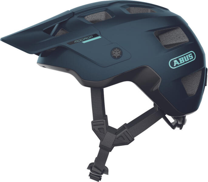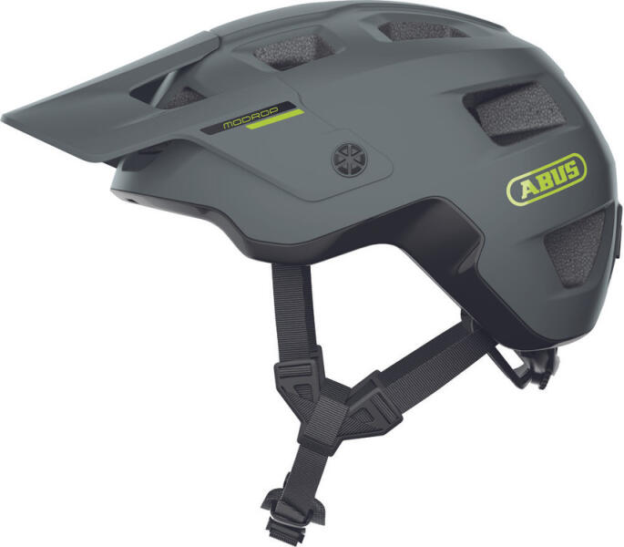 ABUS MODROP - AZ MTB SZEGMENS MINDENTUDÓJA Kiváló ár-érték arányú mindenes Trail MTB sisak. A MoDrop kerékpáros sisakot azoknak tervezték, akik nem riadnak vissza az erdei utakon való kalandozásoktól sem. Ez a hegyikerékpáros sisak a legjobb társ a csapatós hegyi szakaszokon, a gyors ösvényeken szerzett élményekhez vagy a nyugodt családi kirándulásokhoz a természetben. Az MTB-specifikus állítórendszerrel és a TriVider pántosztókkal felszerelt sisak számos olyan funkciót kínál, amelyek növelik a kényelmérzetet. Lejtmenetben az állítható magasságú, ernyőszerű napellenző megvéd a lelógó ágaktól. A sisak kétrészes külső héjának köszönhetően a sisak alsó széle is védve van. A MoDrop vizuálisan és funkcionálisan is egyesíti mindazt, amire az offroad kerékpárosoknak szükségük van.